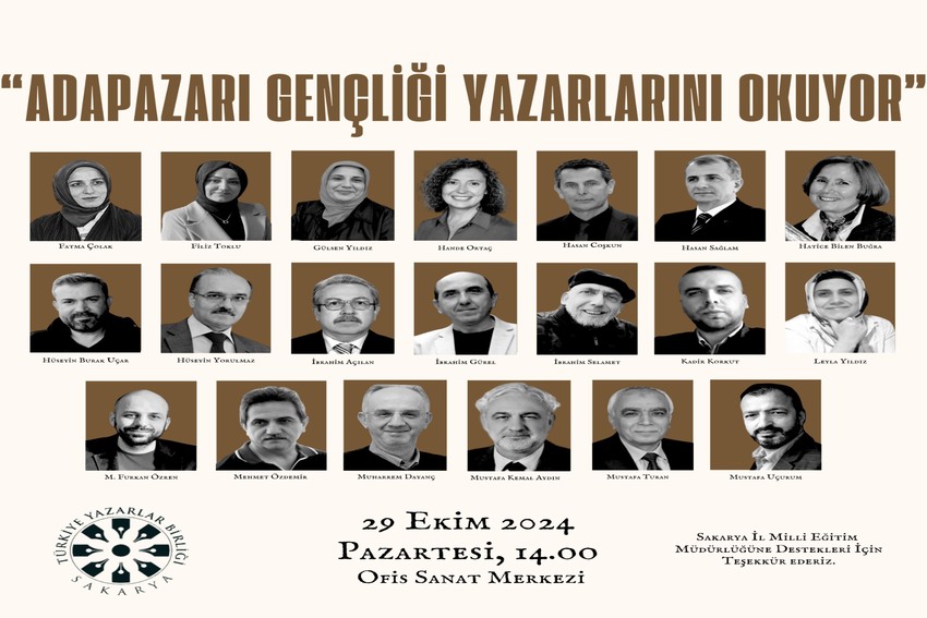 Türkiye Yazarlar Birliği Sakarya Şubesi’nin Sakarya İl Milli Eğitim Müdürlüğü’nün desteğiyle düzenlediği etkinlikte, şehirdeki on liseden seçilen yirmi genç, yaşayan yirmi Adapazarlı yazarın eserlerini okuyup anlatacak, ardından da okudukları yazarlarla buluşacak. 29 Ekim 2024 Salı Günü 14.00’da Adapazarı Ofis Sanat Merkezi’nde gerçekleşecek ve sunuculuğunu Necla Dursun’un üstleneceği etkinlik hakkında konuşan TYB Sakarya Şubesi Başkanı Mustafa Furkan Özren, “Amacımız, Adapazarı gençliğinin yaşayan yazarları tanıması, şehrinin değerlerini kitaplar ve yazarlar üzerinden öğrenip içselleştirmesidir. Yarınlarda yeni Sait Faik’ler, Faik Baysal’lar, Selahaddin Şimşek’ler, Selim Gündüzalp’lerin yetişmesine zemin hazırlamak istiyoruz. Bunun da yolu kitaplardan ve okumaktan geçiyor. Yirmi gencimizin yanı sıra, onları etkinliğimize hazırlayan ilgili liselerin Türk Dili ve Edebiyatı öğretmenlerine, lise müdürlerine, okuma programımızın koordinatörü İsmail Tekdal hocamıza, programımızı desteleyen İl Milli Eğitim Müdürümüz Coşkun Bakırtaş’a, bize salon tahsis eden Sakarya Büyükşehir Belediye Başkanlığımıza ve okuma programımıza katılacak yazarlarımıza çok teşekkür ediyorum. Yaşasın edebiyat, yaşasın okuyan yazan gençlerimiz diyorum” dedi. Söz konusu programda gençler, okudukları Şair Fatma Çolak, deneme yazarı Filiz Toklu, yemek yazarı Gülsen Yıldız, öykü yazarı Hande Ortaç, biyografi yazarı Hasan Coşkun, seyahat yazarı Hasan Sağlam, öykü yazarı Hatice Bilen Buğra, öykü yazarı Hüseyin Burak Uçar, biyografi yazarı Hüseyin Yorulmaz, şair İbrahim Açılan, öykü yazarı İbrahim Gürel, roman yazarı İbrahim Selamet, şair Kadir Korkut, biyografi ve deneme yazarı Leyla Yıldız, roman yazarı M. Furkan Özren, deneme yazarı M. Kemal Aydın, akademisyenler Dr. Mehmet Özdemir ve Prof. Dr. Muharrem Dayanç, şair – öykü yazarı Mustafa Uçurum ve tarih yazarı Mustafa Turan’ın kitaplarını anlatacak ve etkinlik bitiminde okudukları yazarlarla bir araya gelecekler.