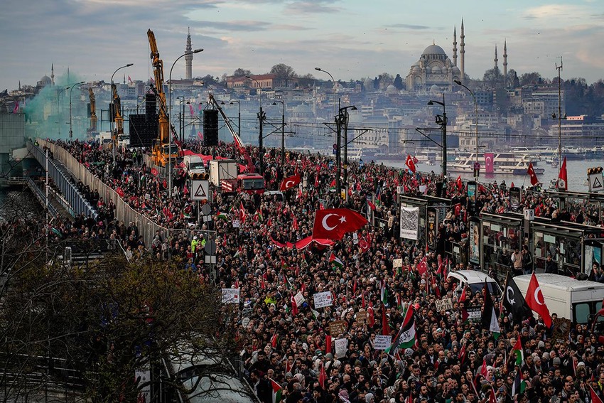 1 Ocak sabahı, Galata Köprüsü’nde yüz binler “Sinmiyoruz, susmuyoruz, Filistin’i unutmuyoruz,” eylemi ile İstanbul’dan dünyaya Gazze’yi hatırlattı. Güzel İstanbul’un güzel Galata’sı Türk bayrakları, Filistin bayrakları ile bezendi, bir gece öncesinde Galata Kulesi’ne Filistin kefiyesi asıldı.