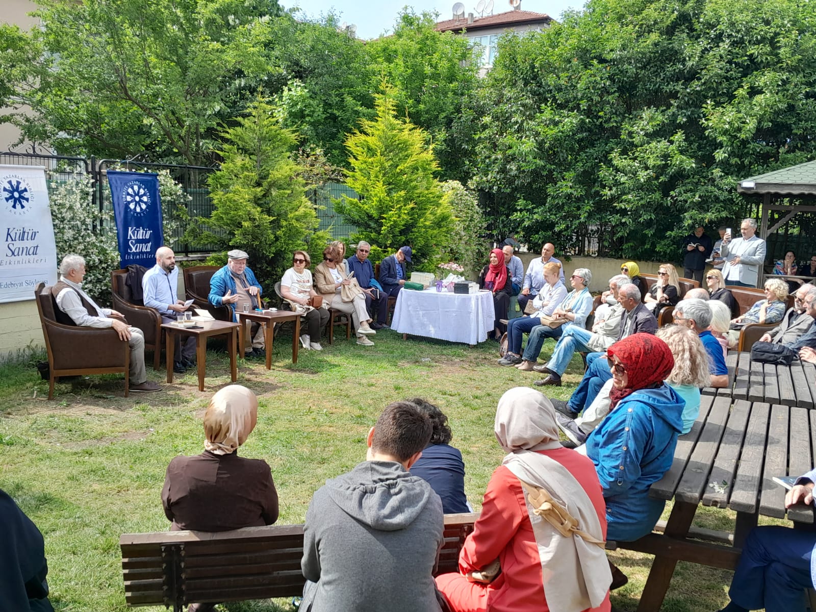 On beş gün kadar önce Değişim – Meserret Yayınlarından çıkan ve raflarda yerini alan eseri okuyan Küçürek öykü yazarı Arzu Özdemir ile Roman yazarı İbrahim Gürel’in kitapla ilgili beşer dakikalık özet değerlendirmeleriyle zenginleşen söyleşide, 82 yaşındaki Organizatör Hamdi Özarutan’ın yakın dostlarından Gazeteci Zeki Aydıntepe, sınıf arkadaşları Milli Futbol Hakemi Erdoğan Çamlıyurt ve Ziraat yüksek mühendisi Nedret Kuşaksızoğlu, şair-roman yazarı Asuman Figen Tümer kısa ve güzel birer konuşma yaptılar.