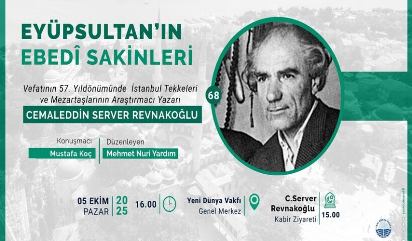 Tümü CEMALEDDİN SERVER REVNAKOĞLU EYÜPSULTAN’DA YÂD EDİLECEKDR. ALAATTİN BÜYÜKKAYA BUGÜN “İSTANBUL SOHBETLERİ”NDE HATIRALARINI ANLATACAK