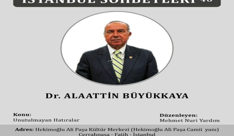 Yıllardan beri Fatih Cerrahpaşa’da devam eden aylık “İstanbul Sohbetleri”nde Dr. Alaattin Büyükkaya, unutamadığı hatıralarını dinleyicilere anlatacak.