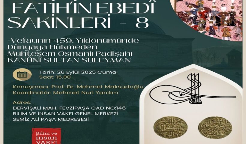 Osmanlı Devleti’nde 46 yıl tahtta oturan ve “Muhteşem Süleyman” ismiyle anılan Kanûnî Sultan Süleyman, vefatının 459. Yıldönümü münasebetiyle Fatih’te rahmetle ve şükranla yâd edilecek.