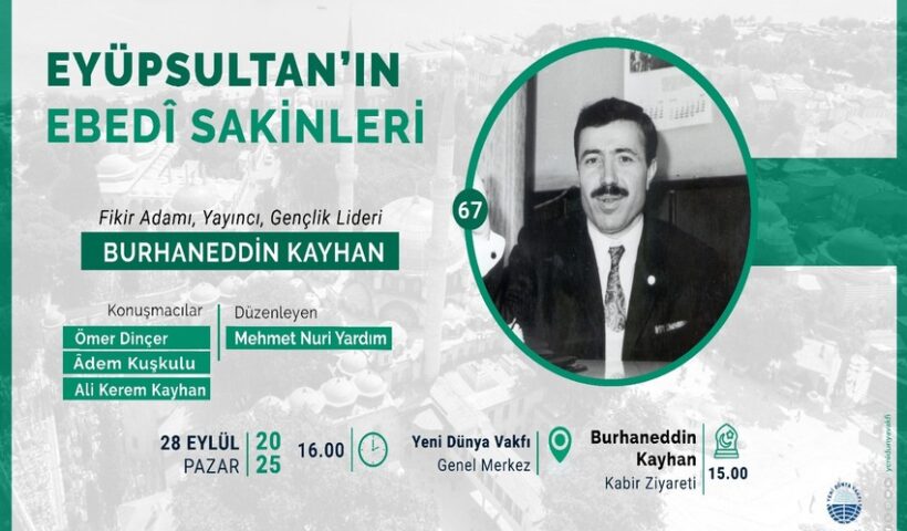 Bir dönemin gençlik lideri, fikir ve dava adamı, MTTB Eski Genel Başkanı, yazar ve yayıncı Burhanettin Kayhan, Eyüpsultan’da düzenlenen bir toplantıda yâd edilecek.
