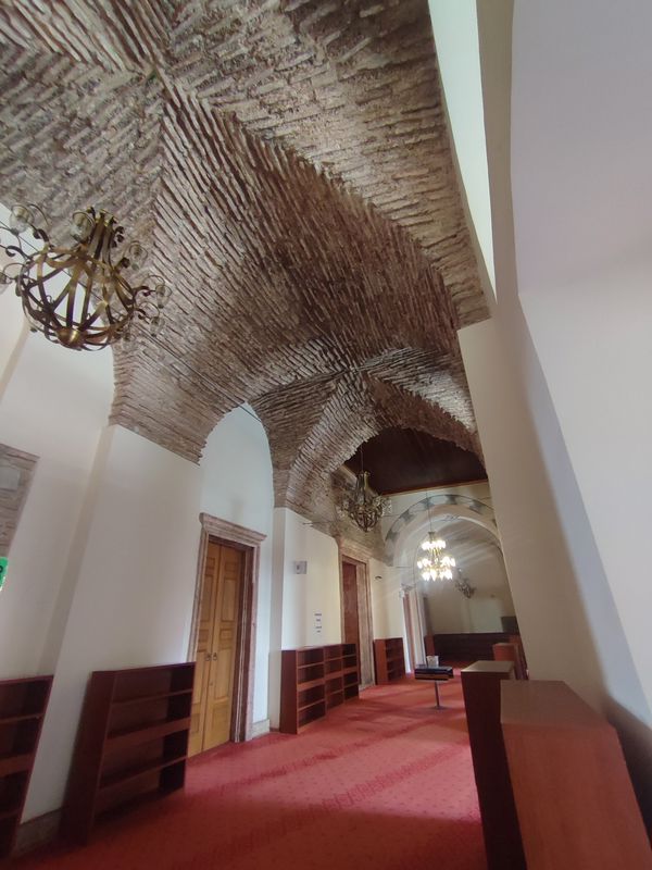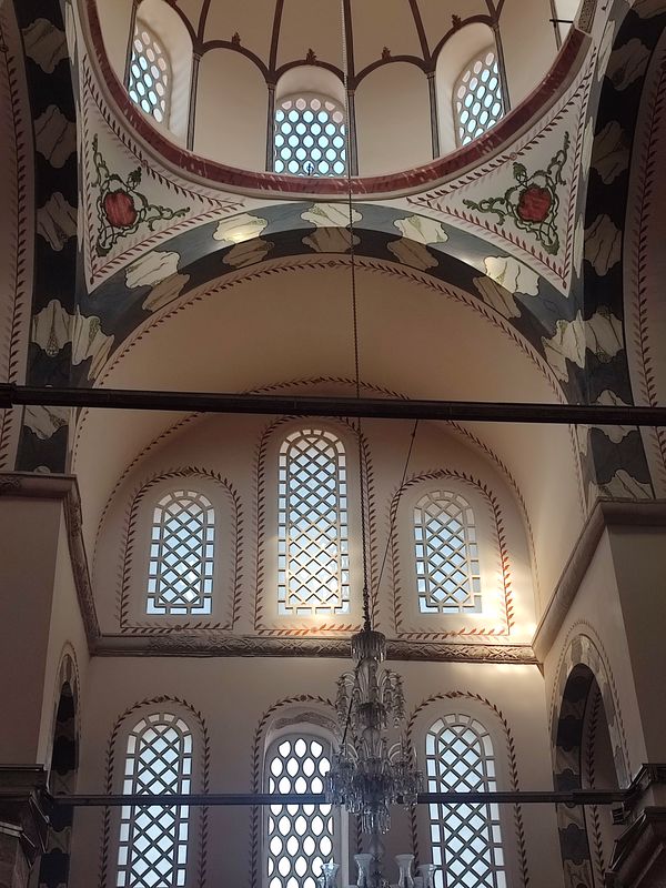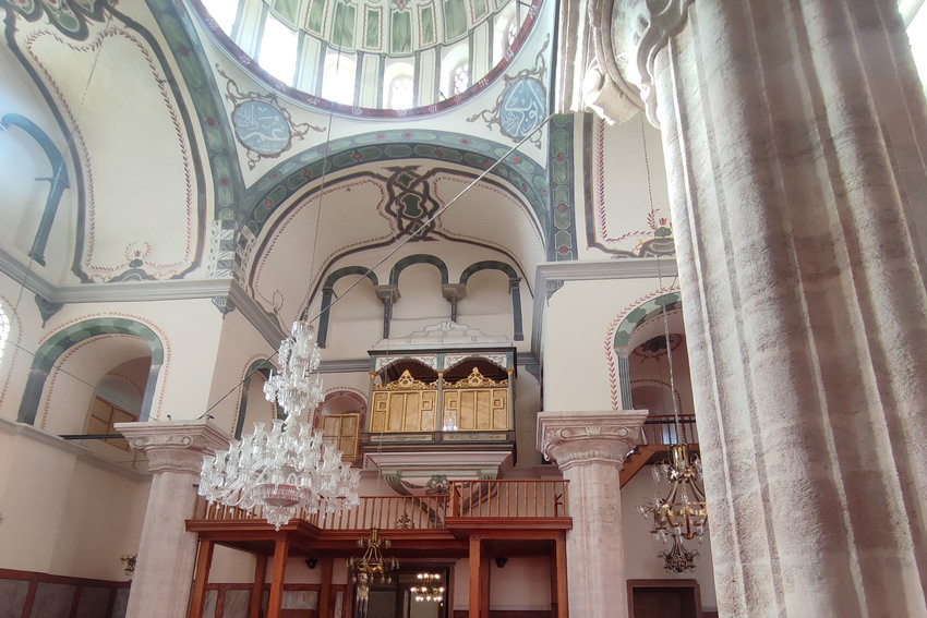 Öylesine büyülü ki içine girmeyi unutuyorum bir süre. Ayasofya’yı andıran tarzdaki taş avlusuna adım atar atmaz insanı içine alan, kucaklayan ve bir o kadar da saygı uyandıran bir hali var yapının. Kapısından içeri girdiği anda tüm telaşlarını kapının dışında bırakıyor sanki insan. Çünkü bu koşturmacası bol şehirde uzun uzadıya düşünemeden yaşayan; ayları gün, günleri saat hızında tüketen biz şehirlileri durmaya, biraz ağır adımlarla hareket etmeye, tefekküre davet eden vakur bir duruşu var. Sunduğu bu konforlu dinginliğin yanında mermer sütunları, kalem işleri ve 1700’lerde eklenen Hünkâr mahfiliyle de dikkat çekici bir iç mekân tasarımına sahip.